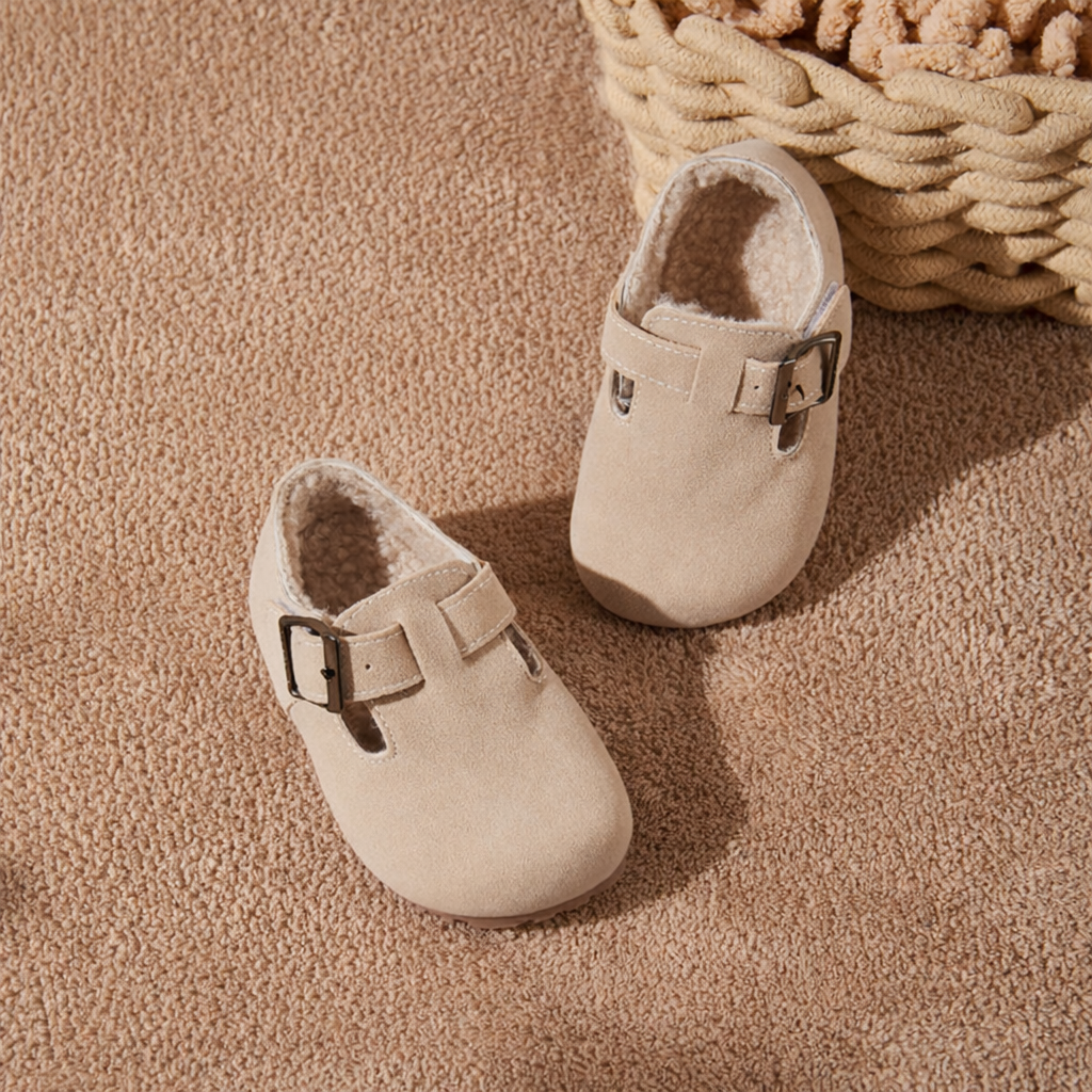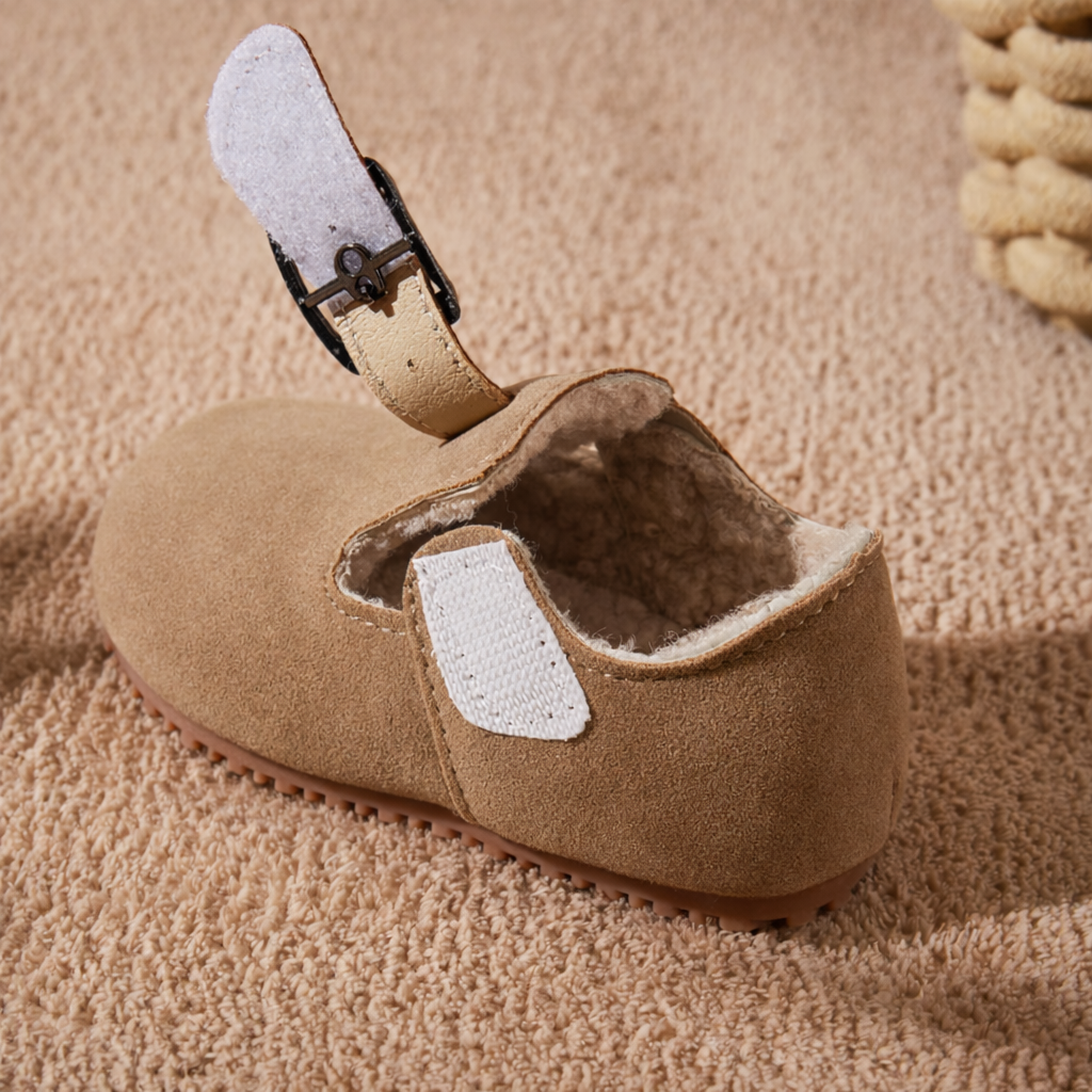 Made with soft vegan suede and a plush inner lining, Acorn is gentle on delicate skin while keeping little feet snug on chilly days. The wide toe box supports natural foot development, while the adjustable buckle strap offers a secure fit that stays put during play, stroller rides, or nap time.