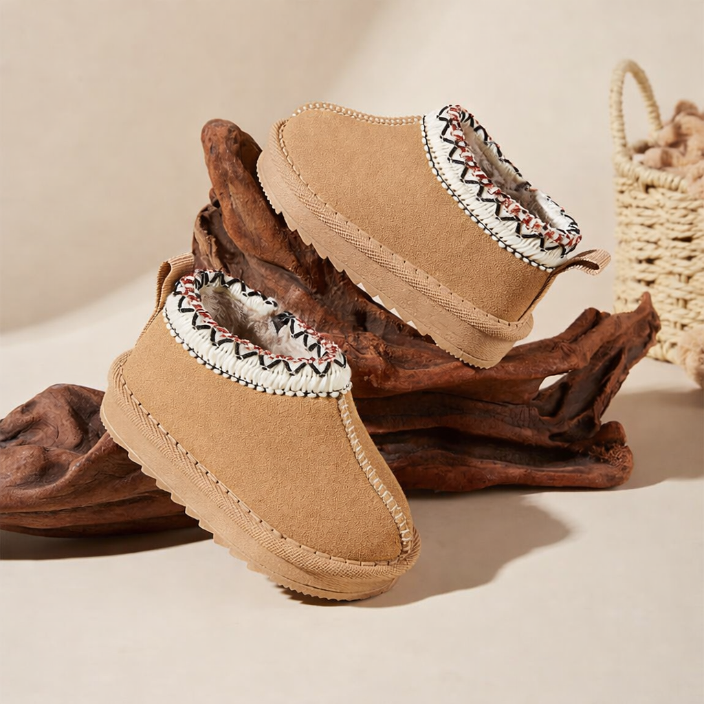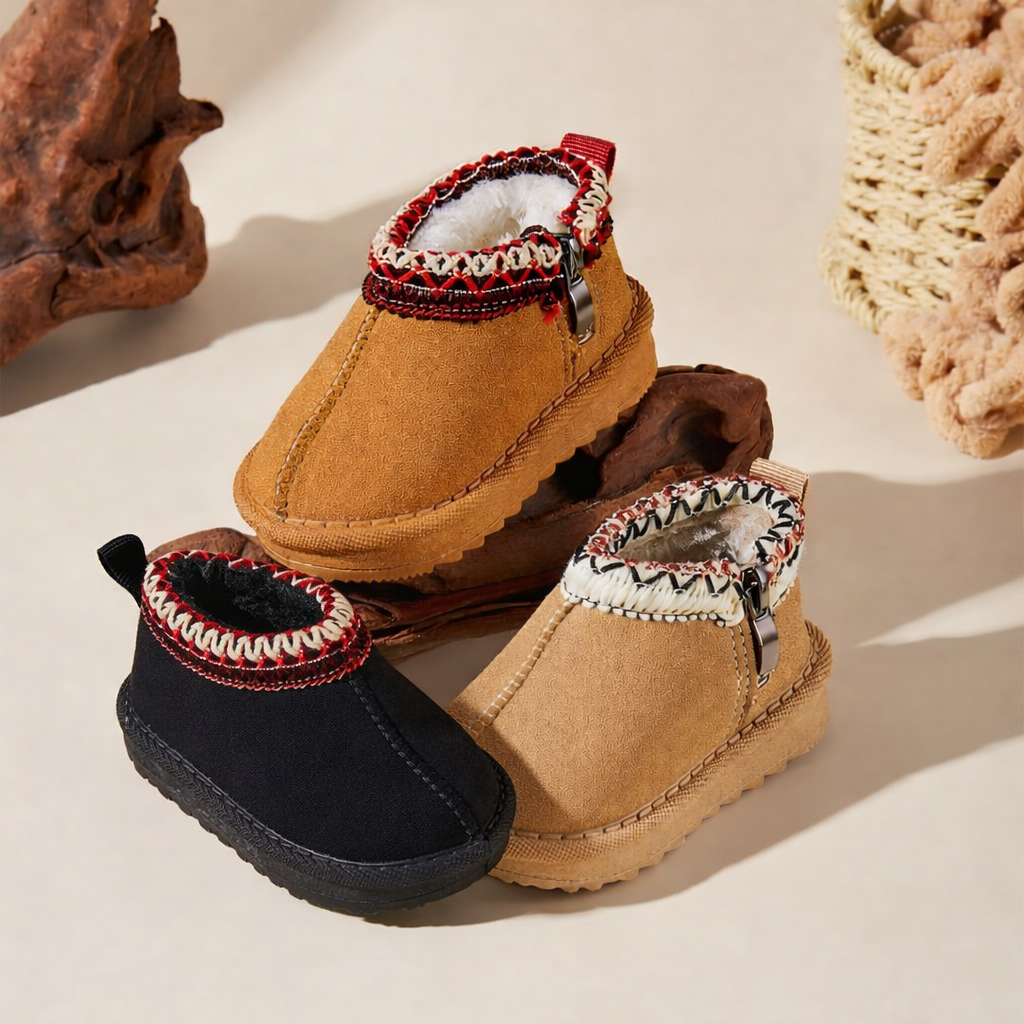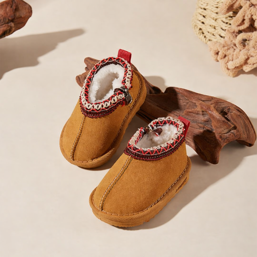 Made for chilly days and cozy play, these boots feature a soft suede-like upper, playful handwoven collar details, and a plush fleece lining to keep tiny toes toasty all winter long. Whether it’s indoor adventures or a quick trip outside, the wide toe box and flexible soles offer all-day comfort and healthy movement.