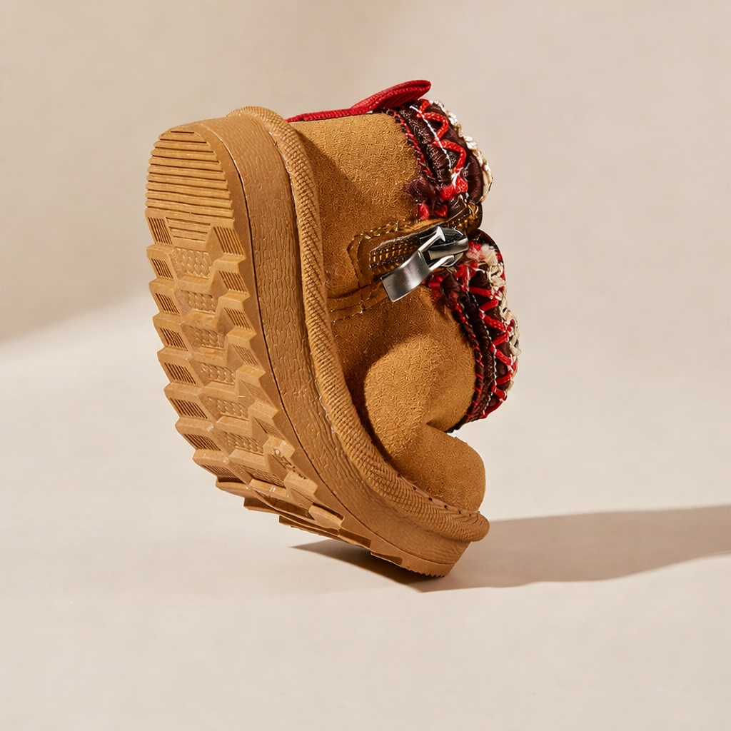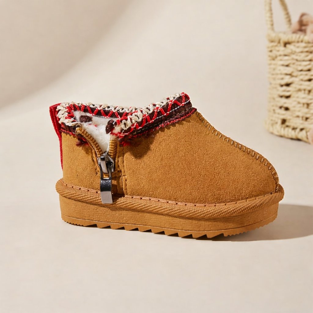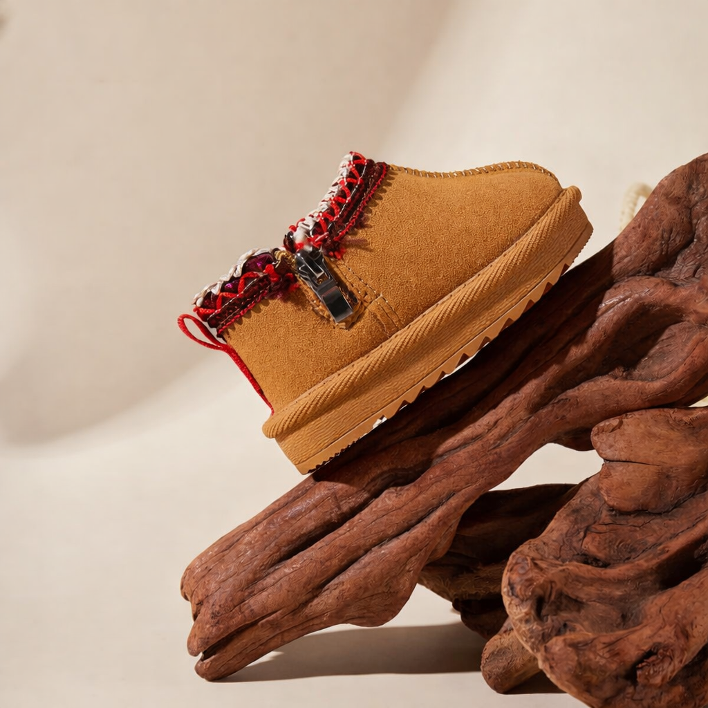 Made for chilly days and cozy play, these boots feature a soft suede-like upper, playful handwoven collar details, and a plush fleece lining to keep tiny toes toasty all winter long. Whether it’s indoor adventures or a quick trip outside, the wide toe box and flexible soles offer all-day comfort and healthy movement.
